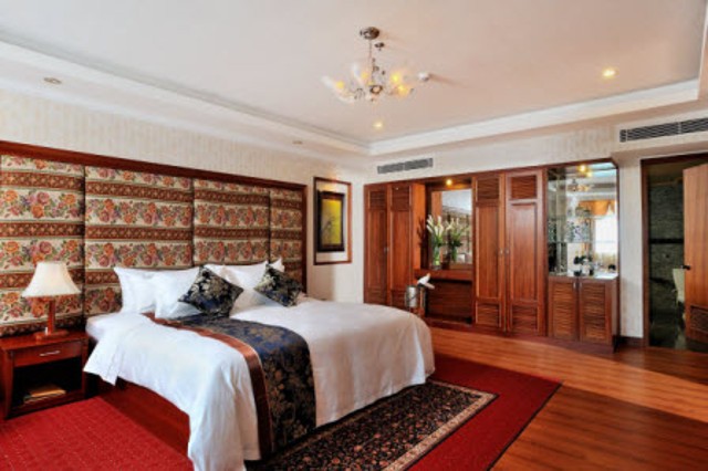 Deluxe Rooms are fully-furnished with elegant furniture, twin or king-sized bed, polished timber floor, walk-in closet and spacious marble bathroom including luxurious showering cabinet and bathtub in an area of 44.1 sqm. Each Deluxe Room is equipped with a lovely sitting or guest greeting area including elegant coffee table and comfortable armchairs where you can have business talk with your partners. From Deluxe Rooms, excellent mountain view or riverview can be easily captured.