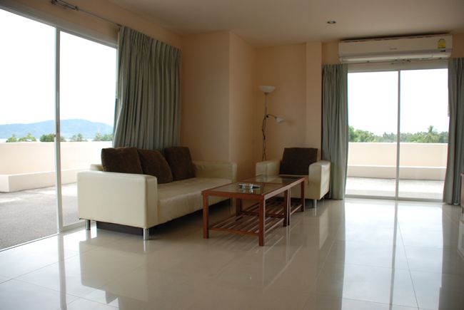 Our Penthouse Apartment B offers master bedroom, small bedroom, two bathrooms, large balcony, better sea view than Penthouse A and full kitchenette.
